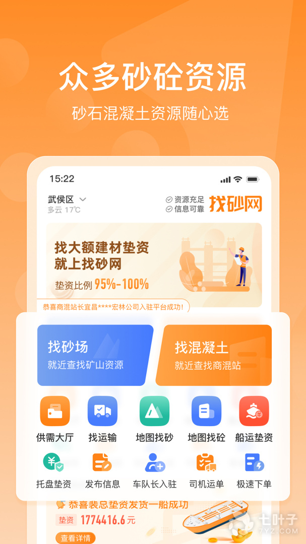 3、基建材料在线交易服务平台,支持砂石运输、交易服务,获取最新基建材料相关信息