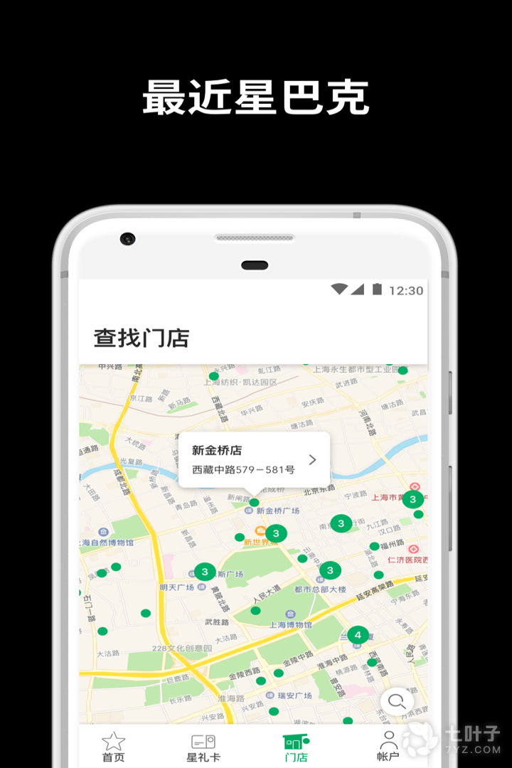 发现离您最近的星巴克门店,为您指引路线,同时还有签到功能。