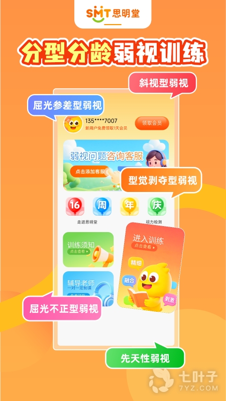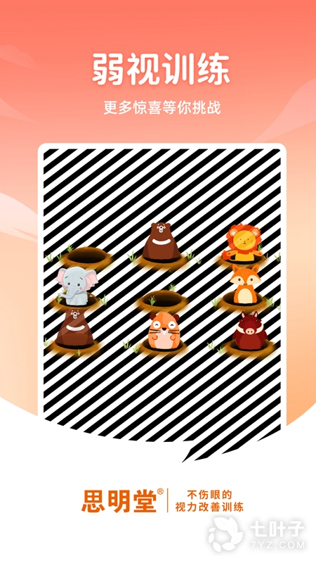 思明堂弱视训练(APP)是基于线下直营门店的成熟临床训练经验,并结合儿童心理学、视光学的相关知识研发而成。软件通过物理疗法激活眼部细胞,结合游戏让孩子在有趣的游戏中恢复视力,软件简单易操作,孩子上手快,成为帮助孩子恢复视力的好伙伴,让孩子从此摘掉眼镜。