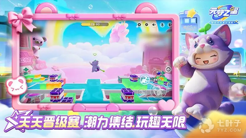 2、玩家在游戏中身处无限大的游乐园变身成星宝,和众多星宝们开启各种对战玩法,游戏玩法休闲,画风可爱,下面小编为大家提供元梦之星下载