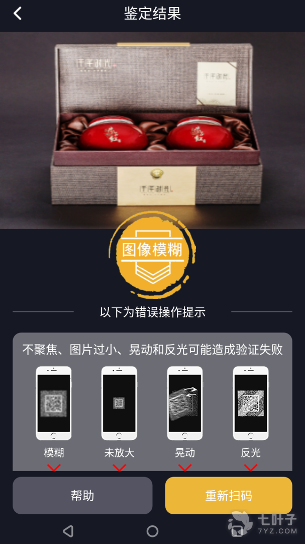 一键反馈赝品,如果扫描的时候得到赝品的验证结果则可以及时反馈信息给平台;