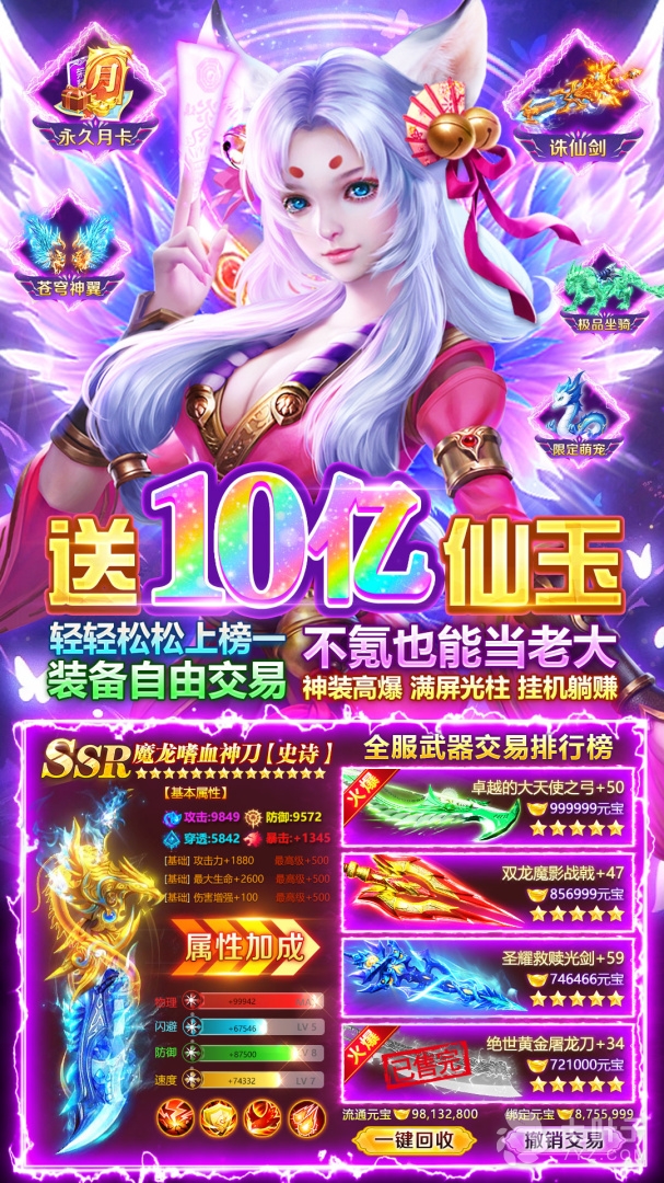 3、更加过瘾的玩法,真正的跨服竞技,在这里你可以体验到前所未有的神话仙侠修炼,场景和人物设计精美