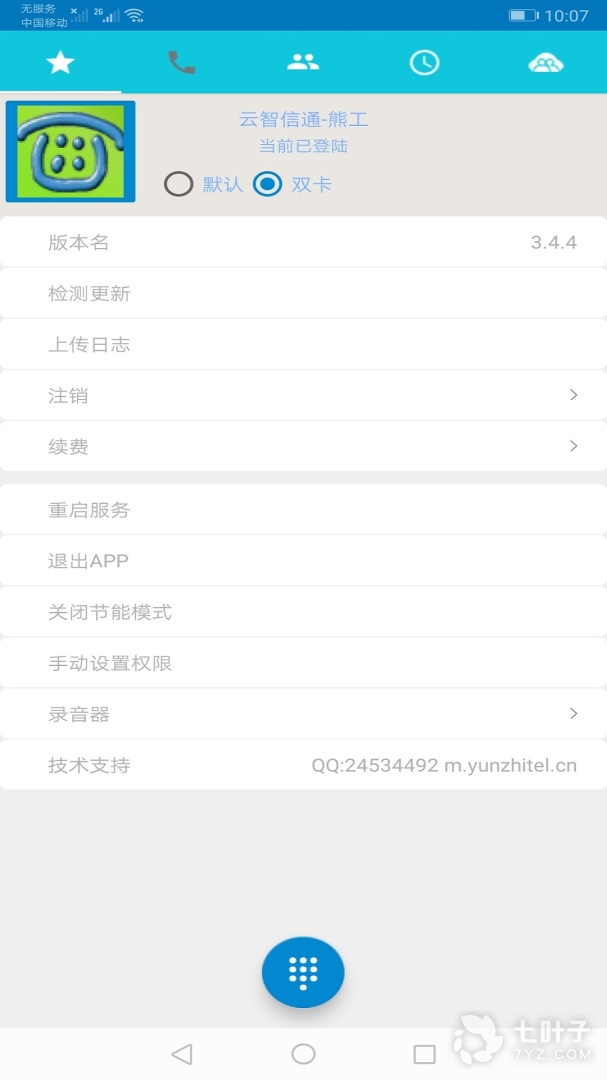 3、进入应用就能看到此应用的版本信息,拨号时可以选择卡
