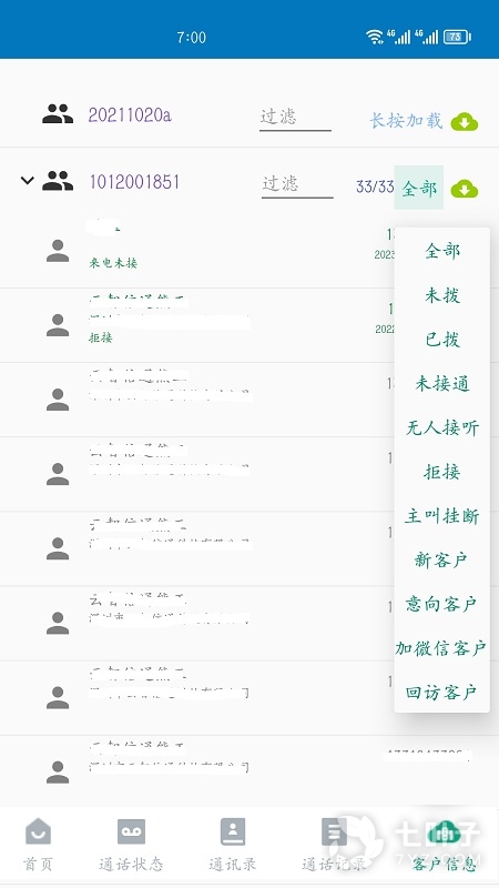 5、进入通话记录页面,即可查看所有的通话历史数据
