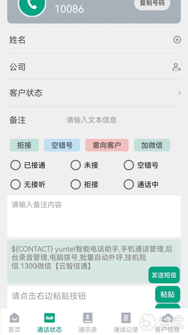 1、Yuntel操作方便,应用便捷的批量拨号和短信发送功能,适合微商、外卖行业人员使用,并且能与电脑端数据同步,更好的提高沟通效率,受到越来越多业内人士的青睐