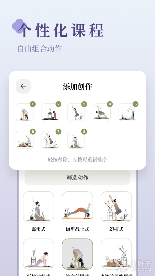 3、百变动作库:我们拥有100多种独特的瑜伽和拉伸动作,您可以根据自己的需求和进度自由组合,打造属于您的个性化课程。不论您寻求放松还是挑战,我们都能满足您的期望