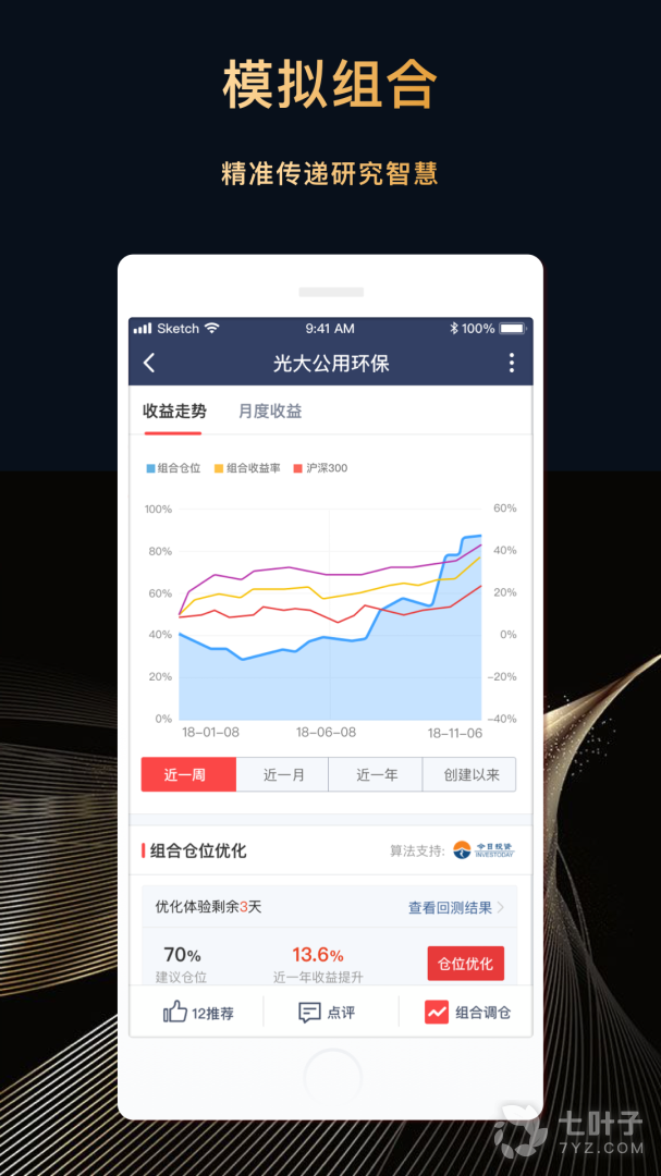 1、在每市各个领域的专业研究人将他们的研究智慧通过组合配置、调仓以及观点实时传递。投资人,则通过自选股、模拟组合、研究人三个维度接收和筛选自己关注的信息