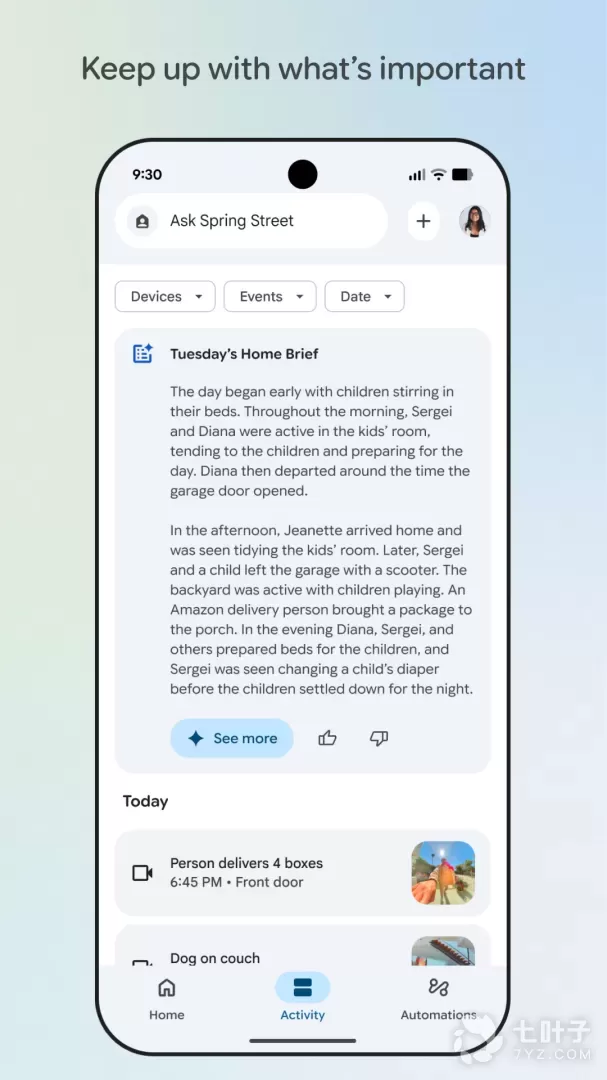 3、只需一个 Google Home 应用,您就可以集中设置、管理和控制您的 Google Nest、Google Wifi、Google Home 和 Chromecast 设备以及数千种兼容的智能互联家居产品(如灯具、摄像头、温控器等等)