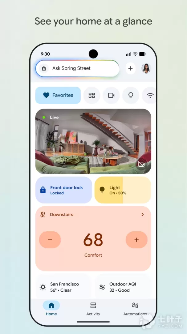 让您可以集中设置、管理和控制您的 Google Home、Google Nest 和 Chromecast 设备以及数千种智能互联家居产品(如灯具、摄像头、恒温器等等)。