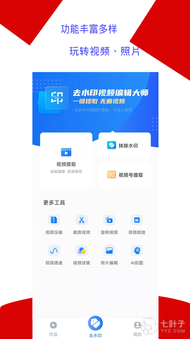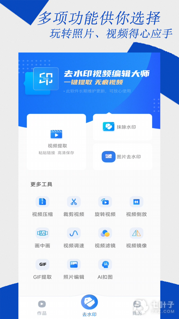 1、拥有视频剪辑、视频拼接、区域裁剪、变速倒放、视频同框、视频后期处理包括、视频水印、视频字幕、视频转GIF等功能,简单易用,帮您创作出爆款热门的精彩视频