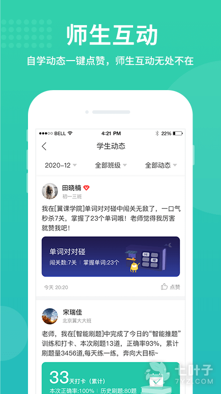 7、野心的教学助手,老师在线布置和批改作业,自动更改作业,帮助老师节省时间