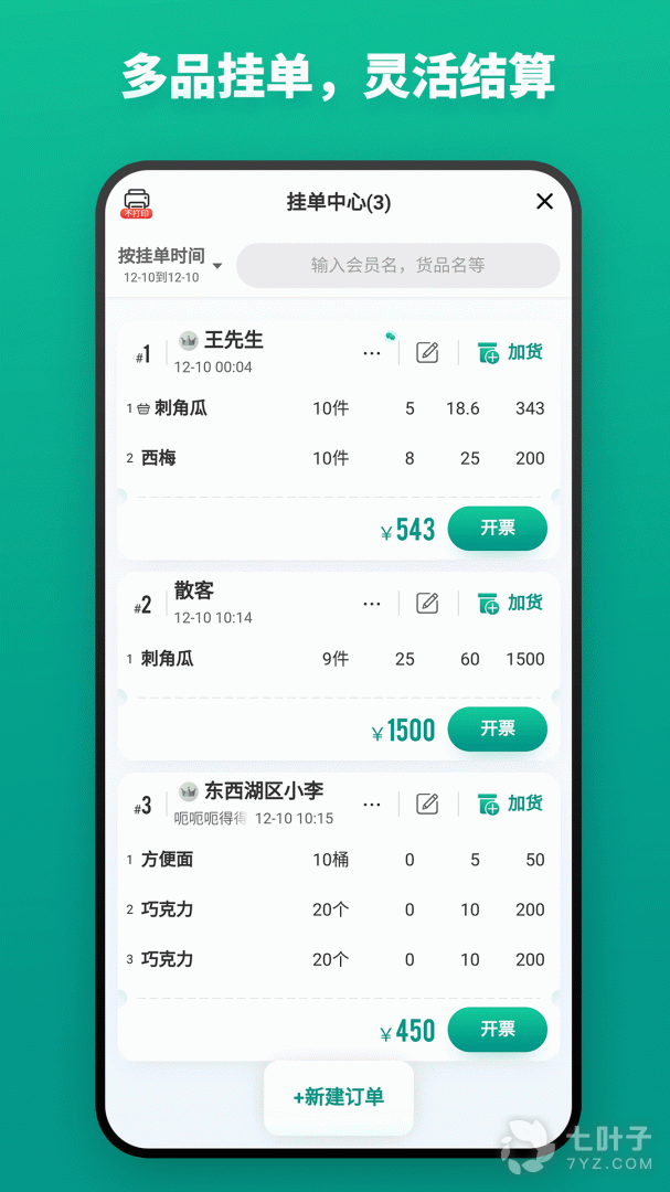 森果货主端APP可以帮助货主高效开票,并配合森果批发收银系统进行收银结算。