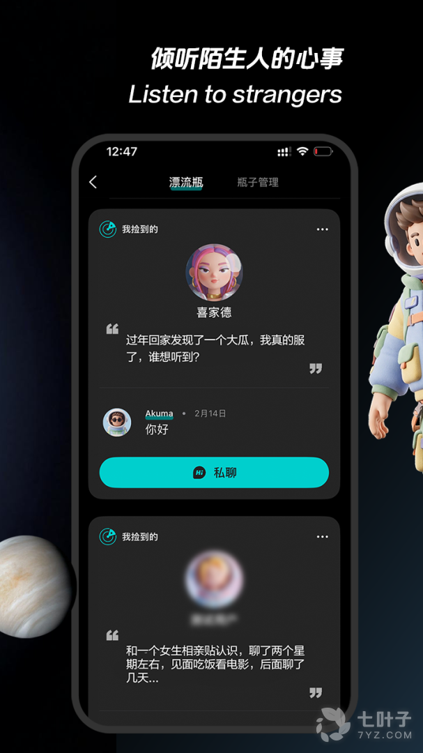 6、用户与陌生人社交的时候无需感到负担,能够尽情的倾述自己内心的秘密;
