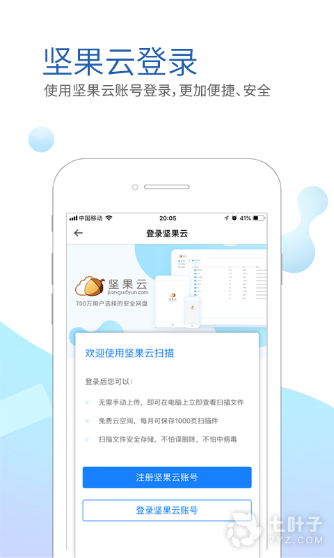 5、坚果云扫描APP是一款文件扫描软件,用户是可以使用软件来对文件进行扫描的。这样是可以提升用户1办公效率的,软件对文件还有管理,出纳等功能的,是可以帮助用户对文件进行实时的保护的