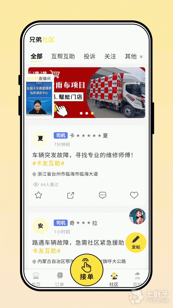 2、在这个软件里可24小时待命,随时接单卡车司机,一呼百应,随叫随到。为卡车维修技师提供找工具的软件,兄弟圈提供维修技师、司机、配件资源方共生的的社交圈