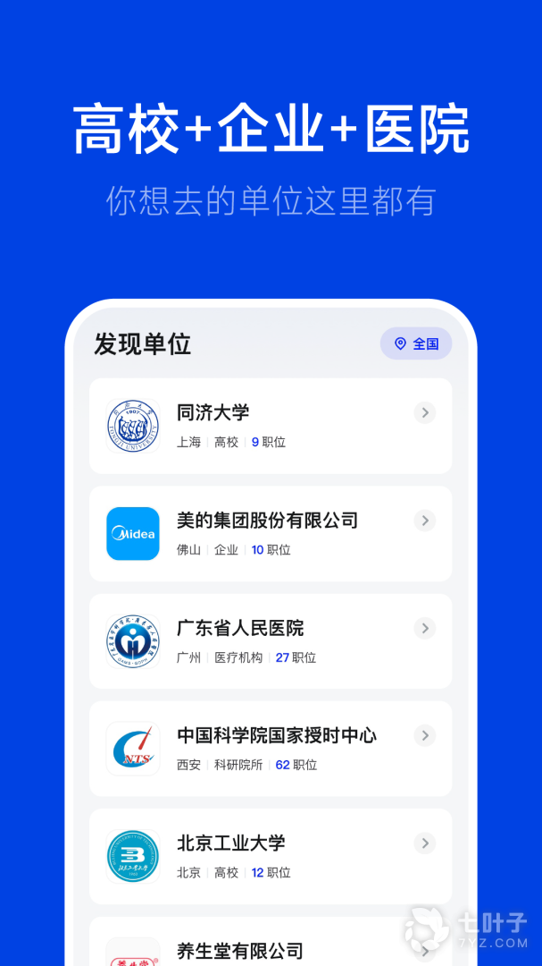 企业、高校、医院等各类单位的招聘者都可以免费发布职位,招人才;