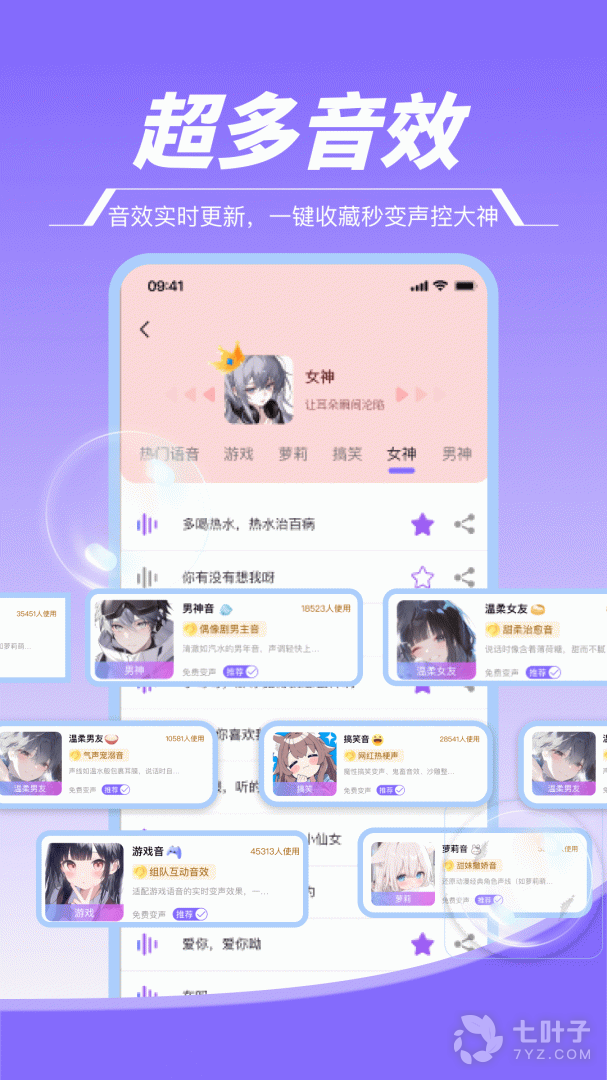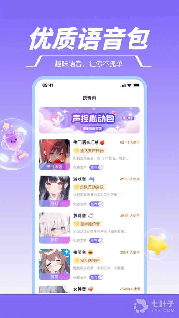 定期更新语音包,让你享受到潮流的萝莉、御姐、大叔、暖男、搞怪、惊悚、整人等各种音效