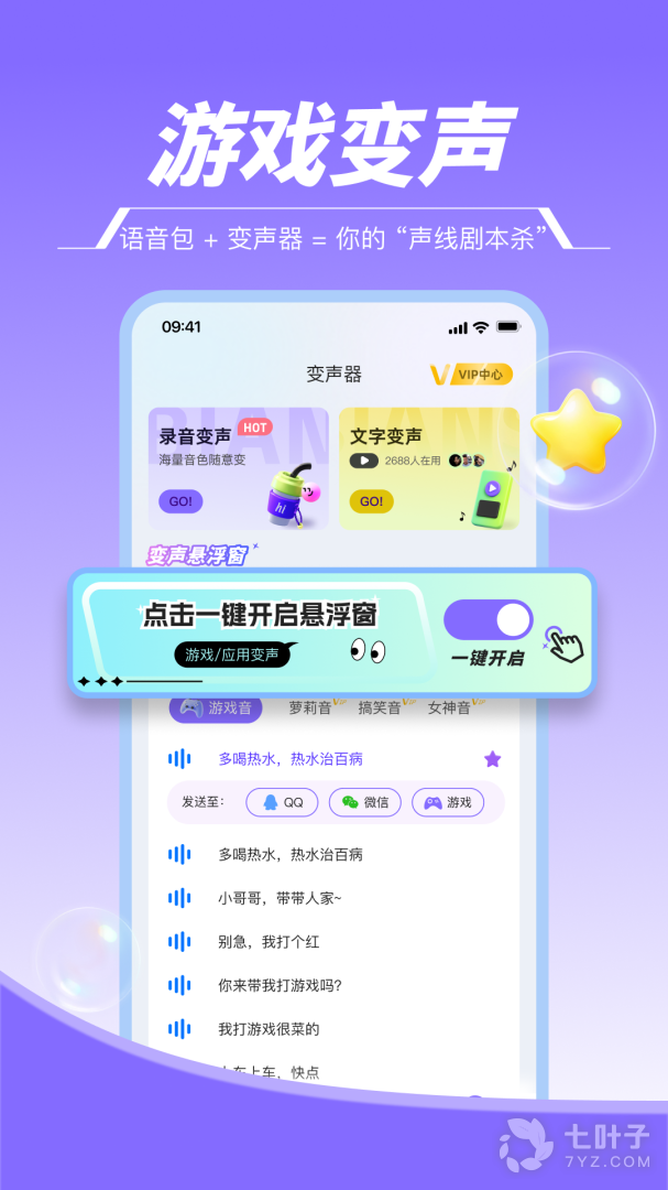 方便快捷的语音包悬浮窗,在聊天、玩吃鸡游戏中随时变声互动。