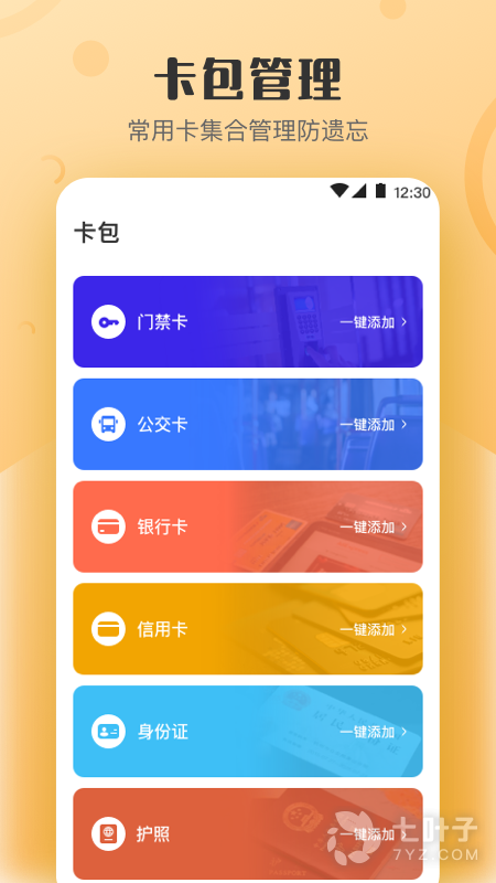 1、可以添加门径卡,公交卡,身份证等证件,快速通过NFC功能使用,支持卡片格式化,使用方便,可以快速读写