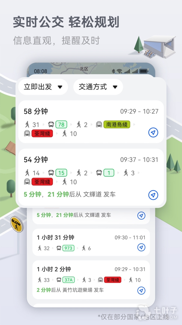 5、通过华为地图导航的实时公交信息提示,用户可以查看部分城市的公交出发和到达实况,从而合理规划时间和线路更优的出行计划