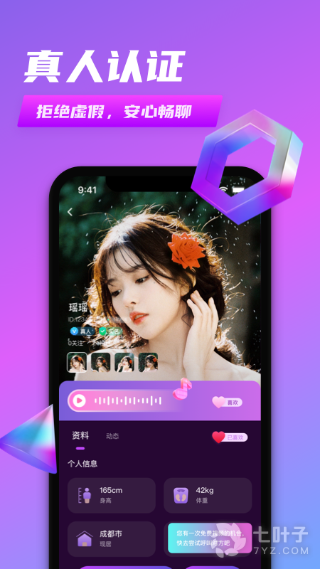 V夜聊——同城交友附近聊天是当下非常流行的一款陌生人交朋友、单身找对象的软件,在这里你可以轻易发现聊得来的本地异性,真人人脸认证、动态生活社区、语音视频简介都可以迅速帮你了解对方。