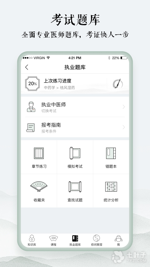 全部中医类考试题库,几十万道题,助您早日走上执证道路。