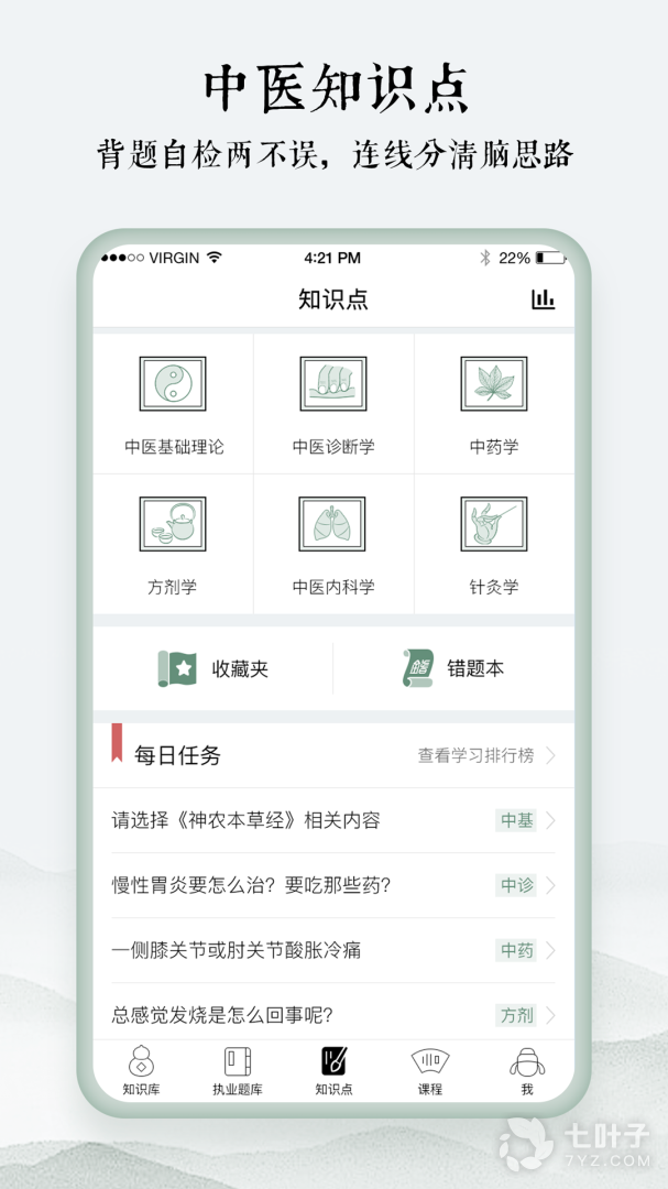 - 囊括中医各类学科基础知识,看图识中药,课程笔记、思维导图、趣味学习等常用功能。