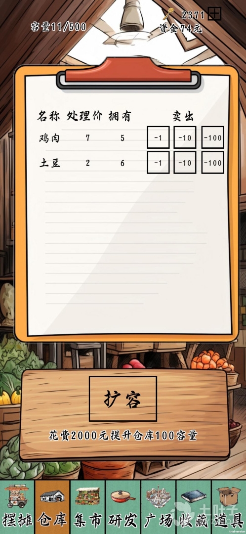 游戏的目标是在一百天内通过摆摊赚取尽可能多的利润。玩家可以使用赚取的资金购买更好的商品、扩大摊位规模、升级设备等,以提高经营效益。