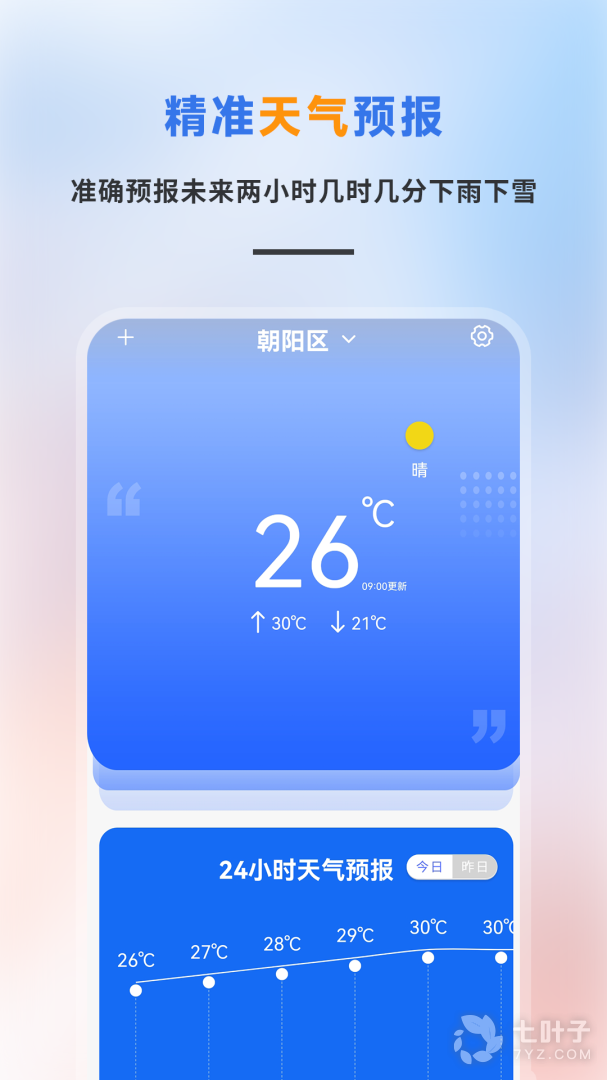 1、预报天气非常的精准。你可以一眼就知晓未来的天气变化,会很贴心的提醒大家穿衣、带伞、防晒等等