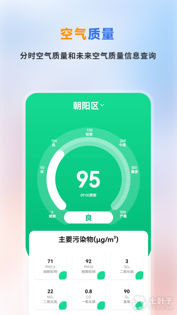 2、空气质量和着装指数提供详情查询信息,让你全面了解天气变化。