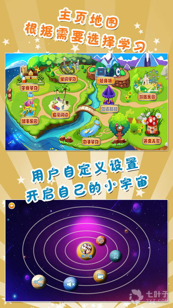 字母学习、单词学习、句子学习、游戏乐园、随身听、英文儿歌