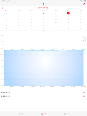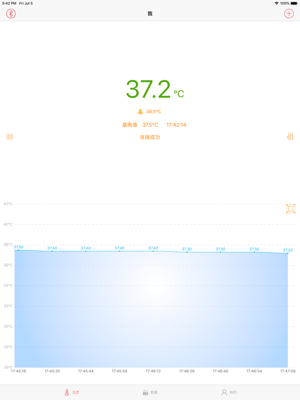 智能体温贴,监测体温的好帮手!监测体温需要配合智能体温贴硬件设备使用,通过蓝牙4.0进行连接。在APP上实时查看体温变化情况,体温变化通过折线图表进行表现,一目了然;支持高低温报警,及时提醒;支持历史体温记录,随时查看以往体温变化情况;