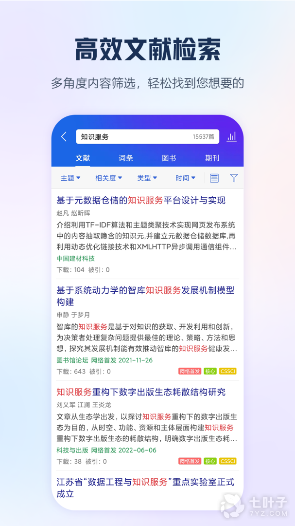 3、手机知网是中国领先的移动知识服务平台,提供全国上万种期刊、报纸等内容个性订阅,以及各类专题知识定制、行业情报推送、文档阅读管理等独具特色的强大知识服务功能,无论工作上还是生活中,都是您必不可少的阅读学习和创新研究工具