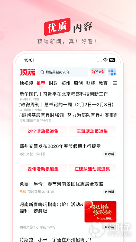 是河南日报报业集团打造的以问答为特色的智慧信息服务平台,整合各方面的新闻资讯内容,在软件中设置有推荐、热问、身边问、发现等专区的资讯信息,上面的新闻项目非常的丰富,每一种社会板块都有进行整理筛选,用户关注什么板块就可以点击对应的板块项目。平台以先进的AI技术为驱动,致力于为新主流人群提供个性化、年轻态、问答式、视频性的资讯、政务及本地生活服务。