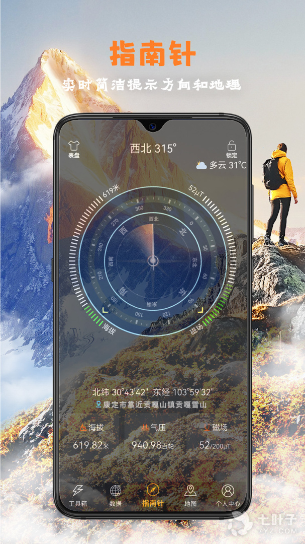 经纬度,地址,气压,海拔,高度差,磁场强度...各类信息全能指南针app应有尽有。