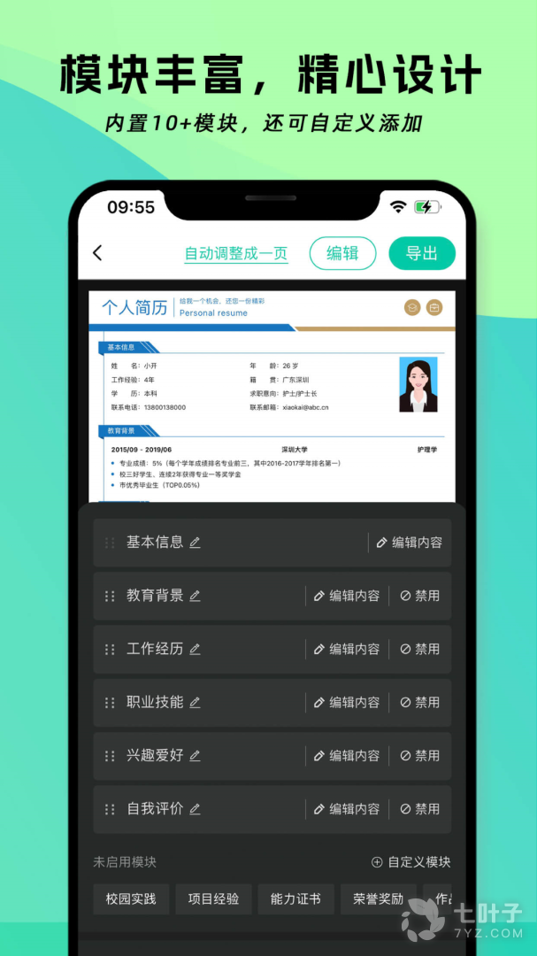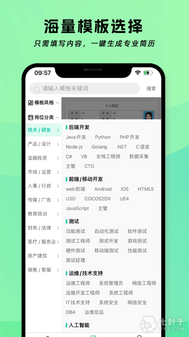 3、是一个方便易用的简历创建平台,拥有大量的简历模板,适用于各个行业。