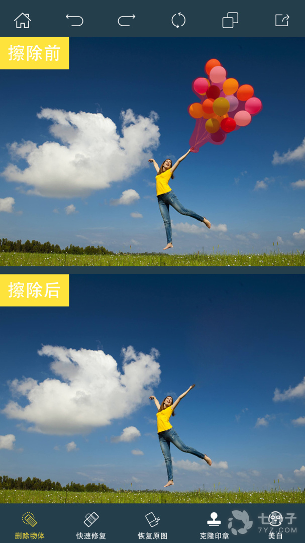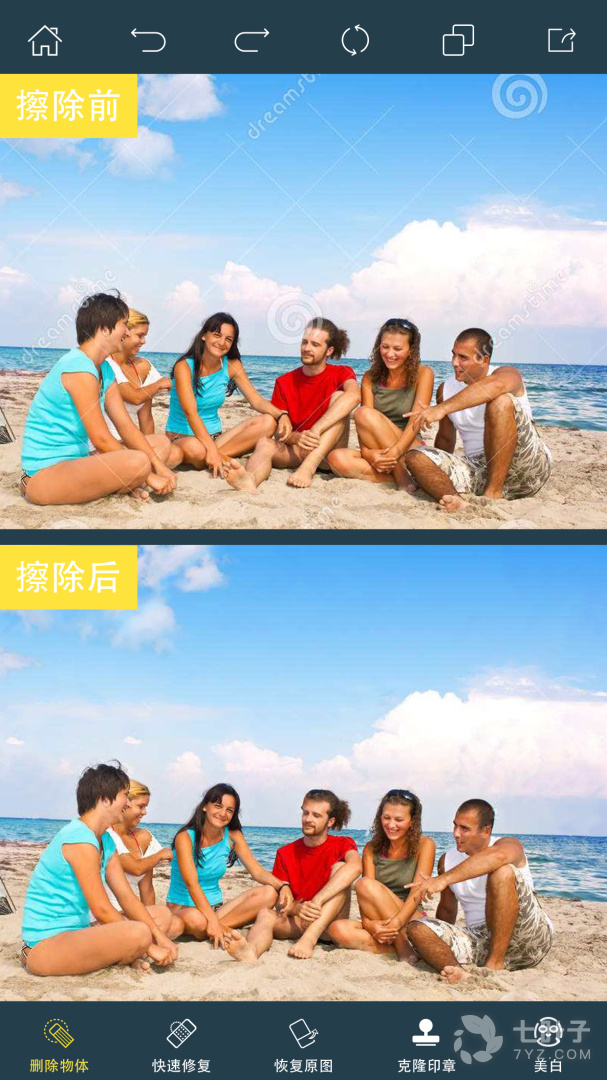 您拍照时不小心把路人甲路人乙也拍进去,影响观感?用我们的app啦,快速把照片中不想要的东西清除掉,还能将人物照片中的斑点瑕疵通通清理掉,方便又实用,使您的美颜照美美哒。