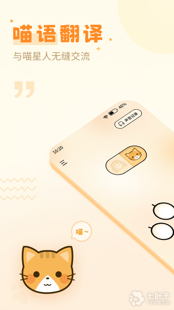 3、猫语翻译器是专门为用户打造的专业好用的手机动物语言翻译软件,在这里用户可以使用软件在线进行猫语自动翻译功能,还可以通过软件进行轻松的猫咪情绪管理,同时使用软件进行语言交流
