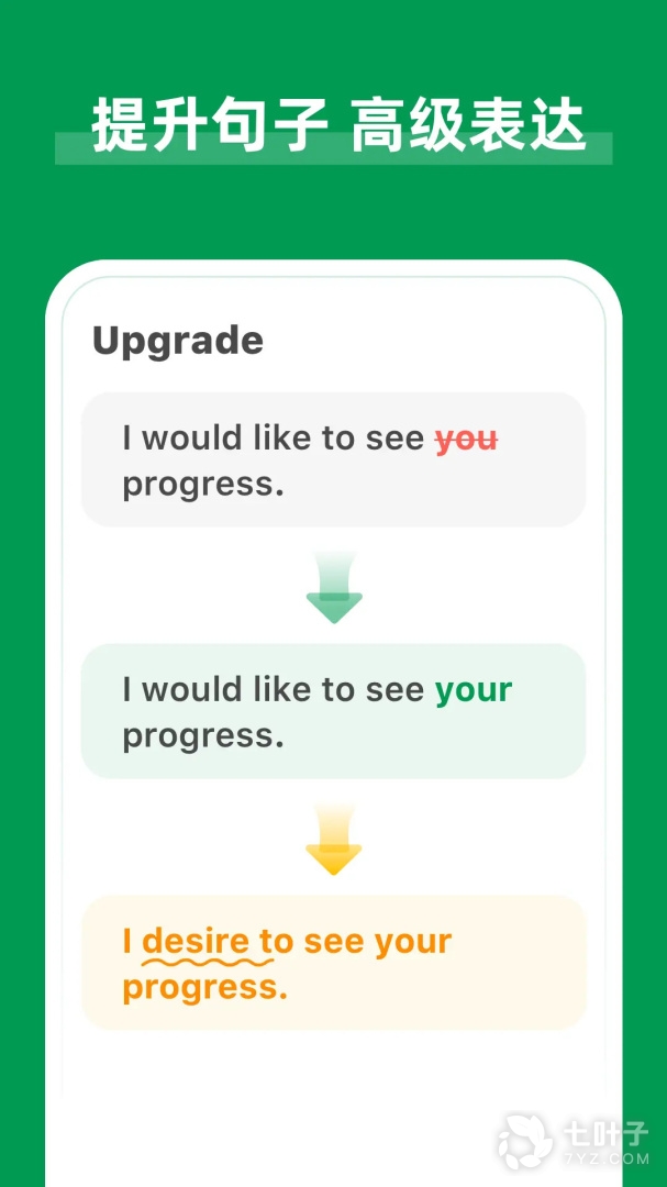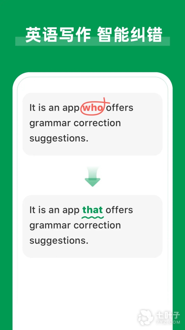 3、可以帮助大家纠正语法问题,让你在工作或者学习中都不会出错了,而且还能为你进行在线解析学习,帮助你弄懂语法错误的原因以及正确的用法,并不是单纯的只是纠错,让大家还能提升英语语法的能力