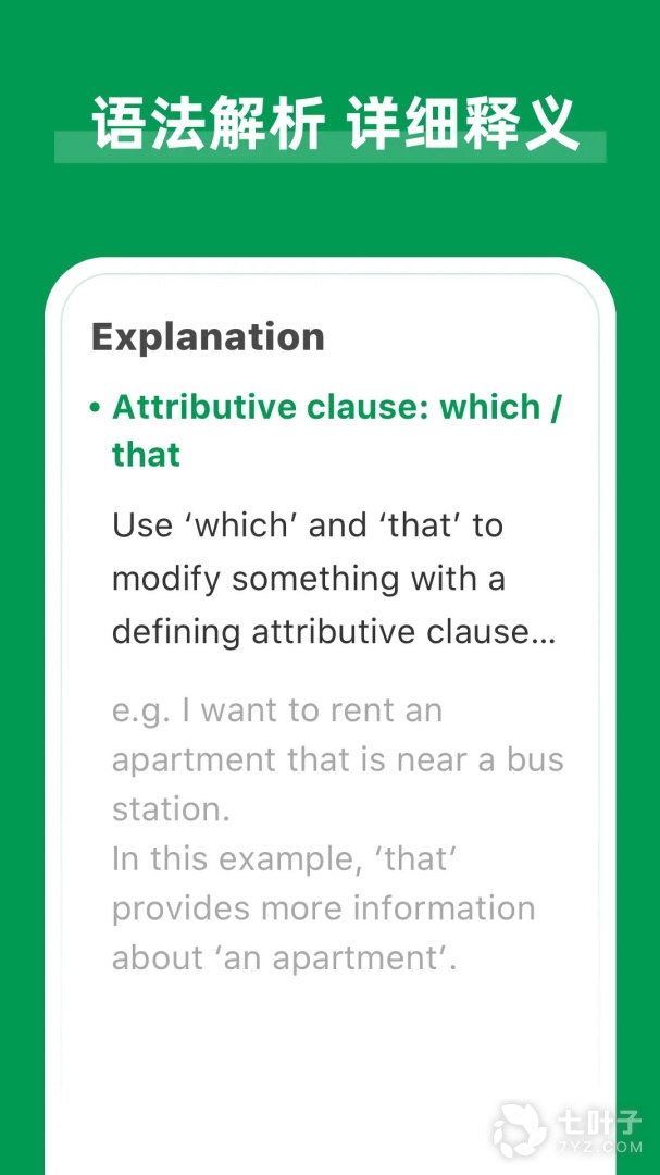 1、是英语语法库,能及时找出你的语法错误并且及时的纠正,让用户更好的提升自己的英语水平,更精准,更快捷的就知道,自己语法哪里出了错。你们心动了吗,那就快来下载吧