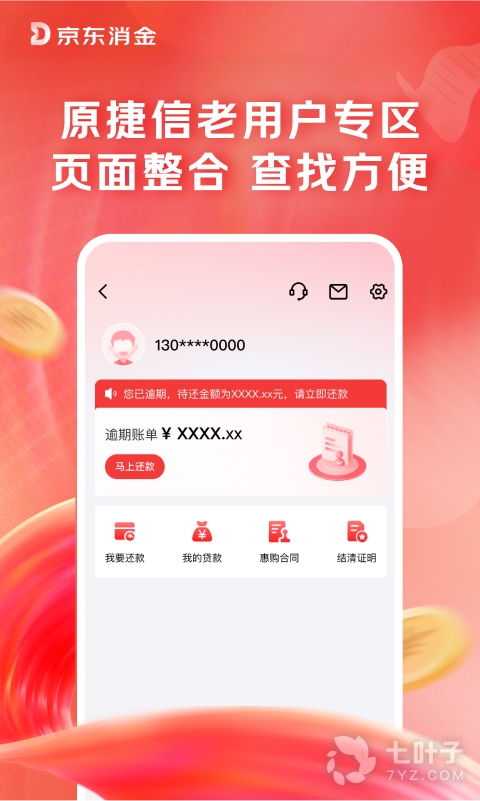 合同状态、贷款本金、分期期数、每期还款额、剩余还款金额、每月还款日,逾期信息等最新的合同详情,最及时的账单信息,随时随地掌握自己的金融状况。