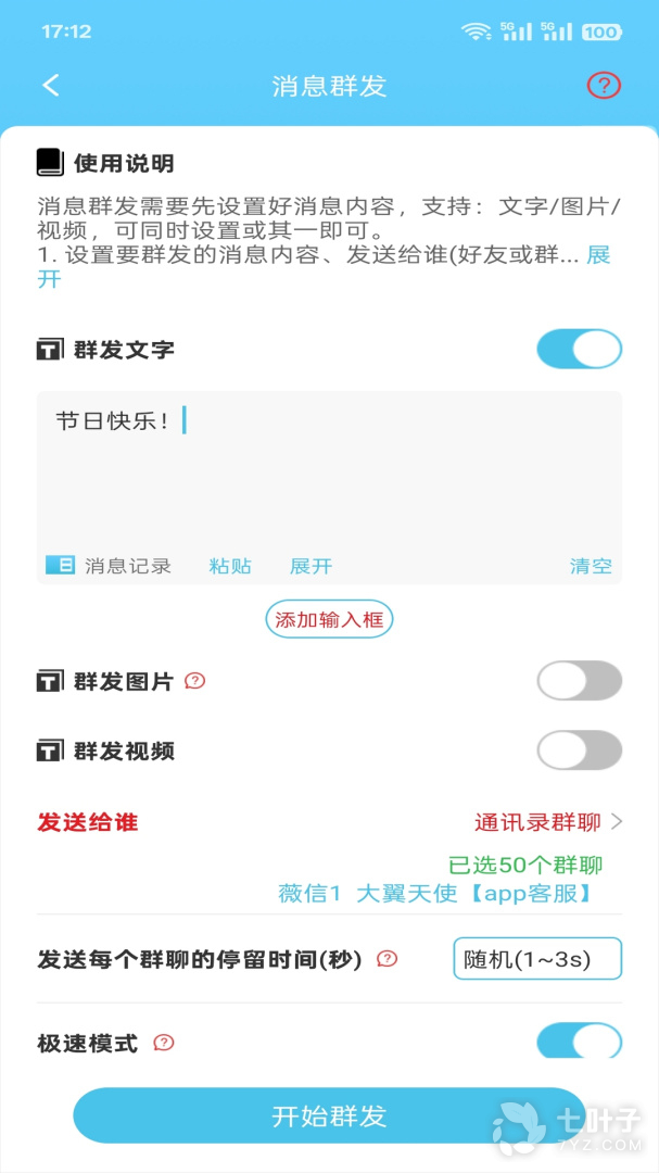 2、突破群发助手每次只能群发200个好友,群发人数无限制