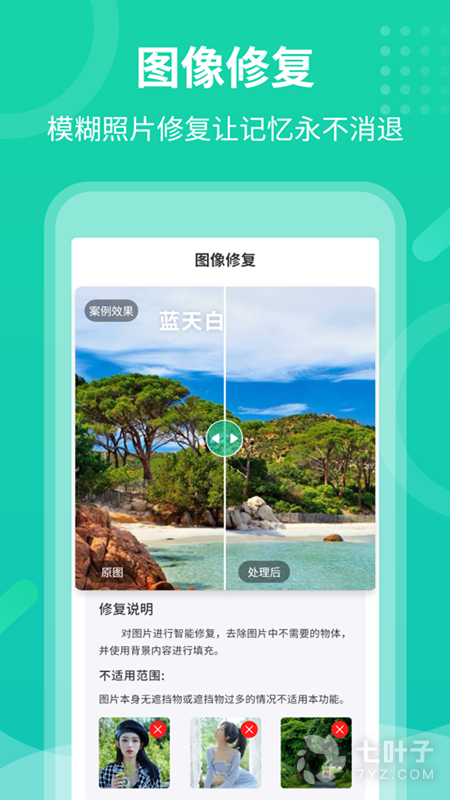 2、致力帮助用户更轻松的还原老照片。软件拥有强大的功能,可以扫描照片上需要修复的地方,然后一键就可以修复。并且拥有上色功能,智能识别黑白照片,然后给照片添加色彩,找回曾经的感觉