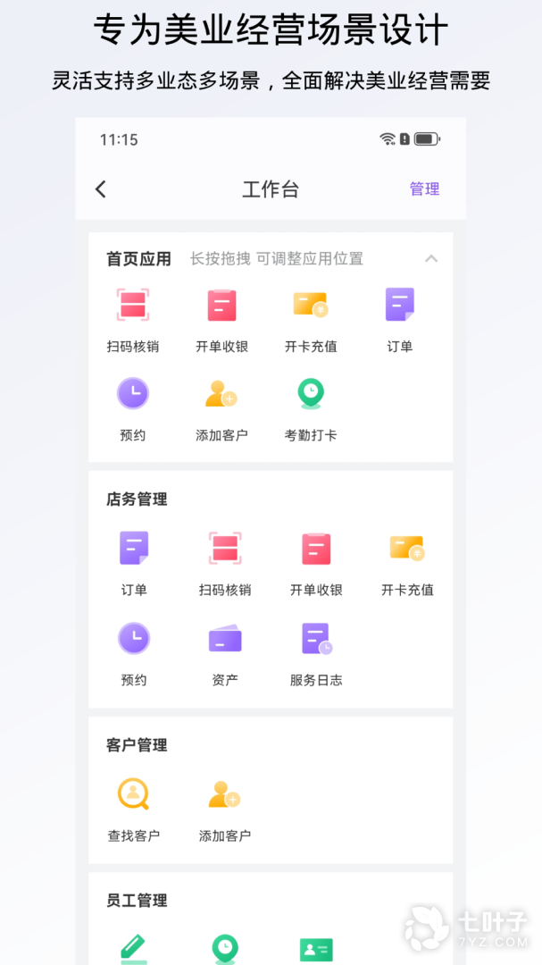 对于商家,在线预约,开单收银,售卡,会员管理,经营分析,提升门店效率,互联网品牌传播,减少经营成本。对于顾客,在线预约,购卡,灵活调整消费时间,让美随时随地的发生。