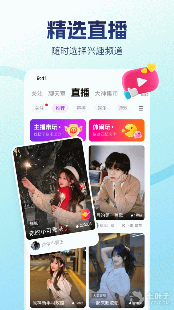 1、比心是国内目前最火热的技能分享社交软件平台。在这里用户可以轻松找到与自己志同道合的好友,一起分享自己的对各种游戏的看法和玩法,同时还可以寻找大神带着自己一起上星上分一起飞,超多游戏大神,等待用户们的发现
