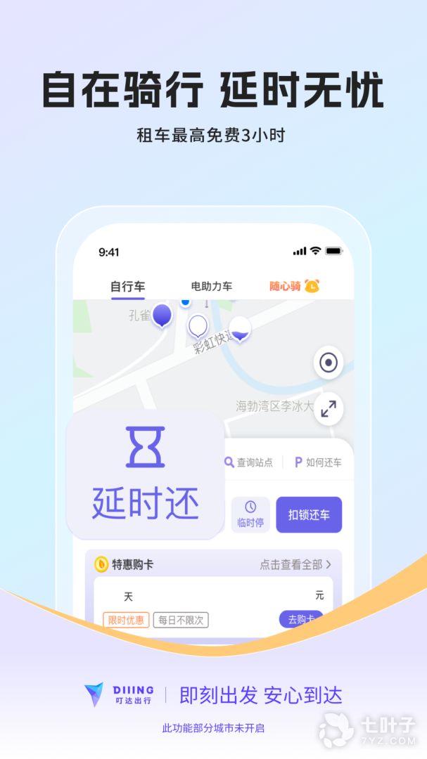 6、延时还车:一键延时还车,超长骑行超低费用