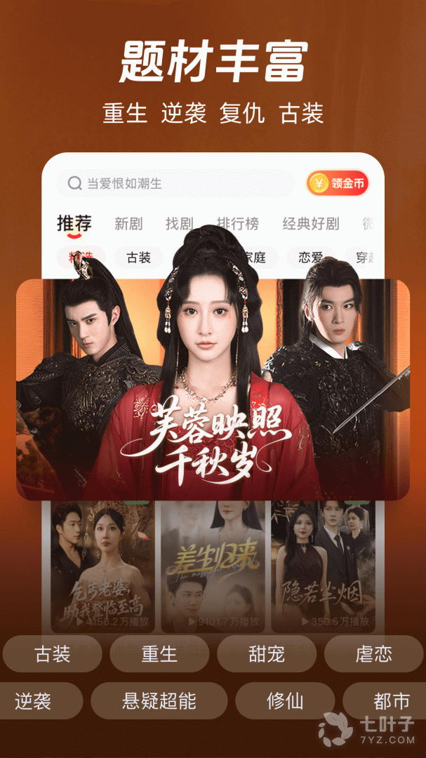3、多元化的选择让“众口不再难调”,无论是江湖里的爱恨情仇,小人物的家长里短都有。