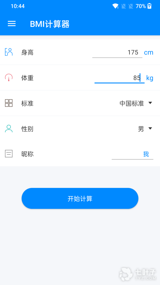 1、手机计算非常方便,你只要输入了体重和身高的数据,填写性别就能进行计算了