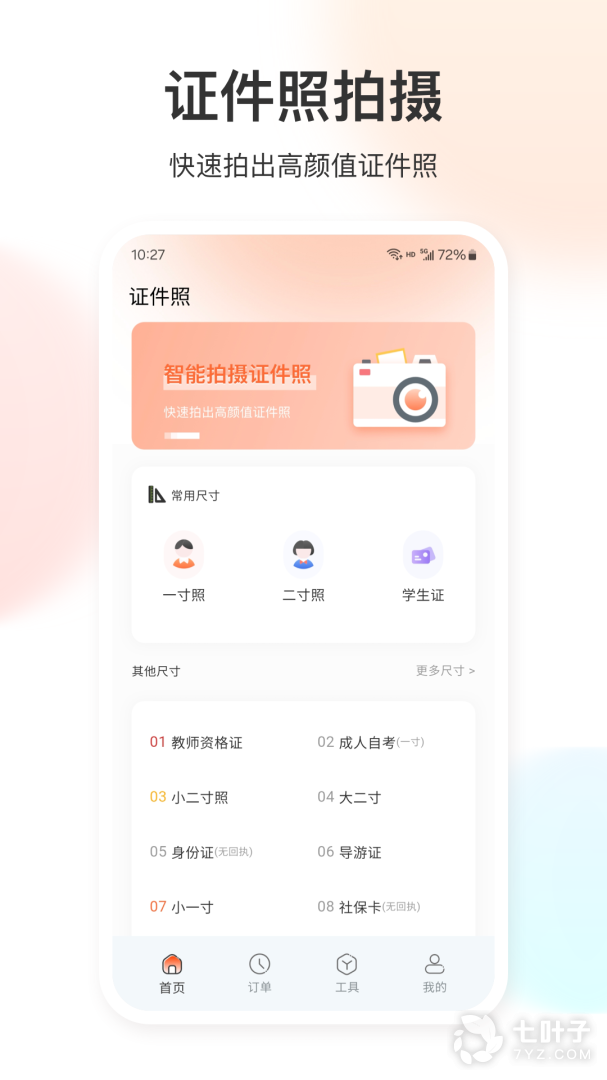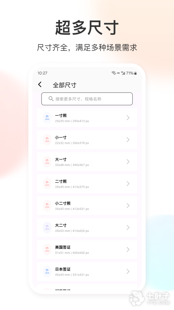 3、AI大数据分析下,软件还能智能推出当下热门的证件照尺寸供你选择,更快捷高效的用手机制作证件照