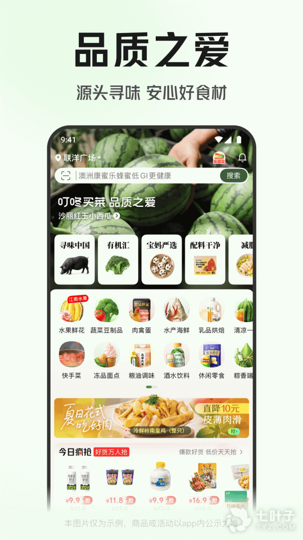 新鲜蔬菜、水果、肉禽蛋、米面粮油、水产海鲜、南北干货、方便速食、应有尽有,厨房用品也能买到。